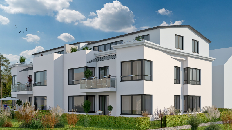 Insgesamt entstehen 19 Wohneinheiten, die sich auf vier Etagen verteilen (Erd- bis Dachgeschoss). Alle Wohnungen verfügen über Terrassen oder Balkone, die beiden Penthouse-Wohnungen haben großzügige Dachterrassen. Eine Gartennutzung ist für die Käufer/innen im EG möglich.